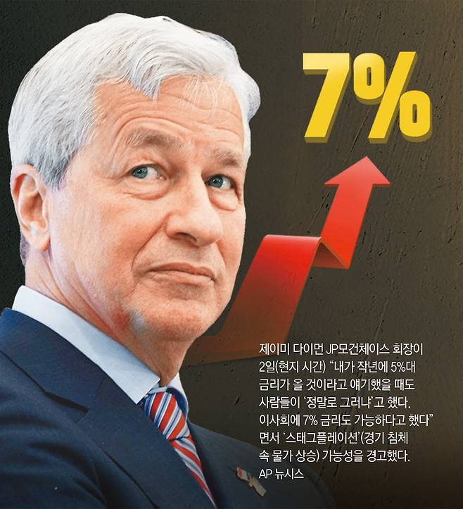 '월스트리트의 황제'로 불리는 제이미 다이먼 JP모건 회장이 "7%대 금리 시대에 대비하라"고 경고했다.