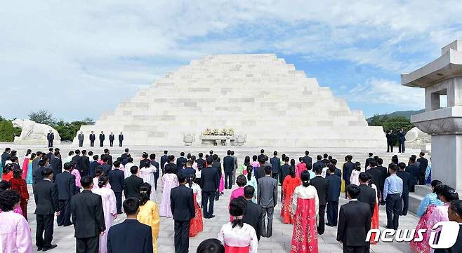 (평양 노동신문=뉴스1) = 북한 노동당 기관지 노동신문은 4일 "개천절 행사가 3일 단군릉 앞에서 진행됐다"며 "천도교청우당 중앙위원회, 관계부문 일꾼들, 평양시 안의 근로자들이 참가했다"라고 보도했다.