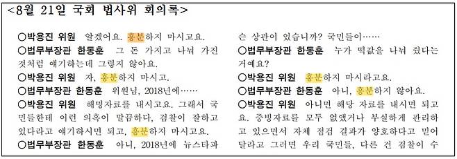 | ▲ 2023년 8월 21일 국회 법사위 회의록 중 |