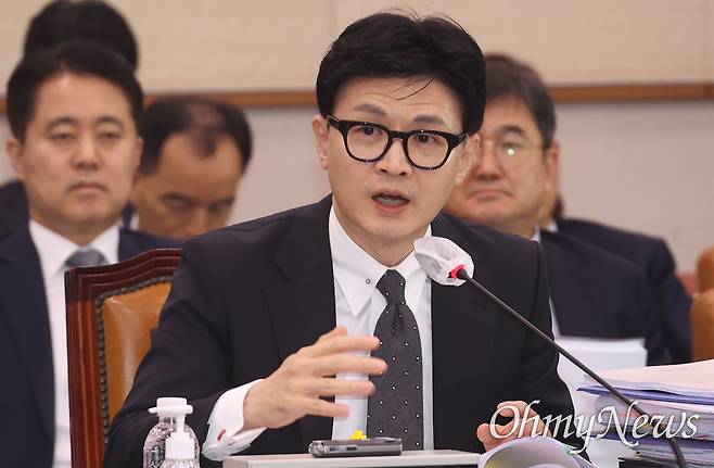 | ▲ 한동훈 법무부 장관이 8월 21일 오후 서울 여의도 국회 법제사법위원회 전체회의에서 의원들의 질의에 답변하고 있다. |