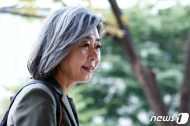 (서울=뉴스1) 이동해 기자 = 김행 여성가족부 장관 후보자가 4일 오전 서울 종로구의 한 빌딩에 마련된 인사청문회 준비 사무실로 출근하고 있다. 2023.10.4/뉴스1