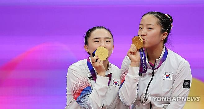 ◇ 김현정> 고맙습니다. 아시안게임 21년 만에 탁구에서 금메달이 나왔습니다. 남녀 단식, 복식 다 합쳐서 21년 만에 첫 금을 따낸 여자 복식조의 신유빈 선수였습니다.