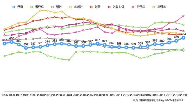 | ▲ 1인당 생활폐기물 발생량. |