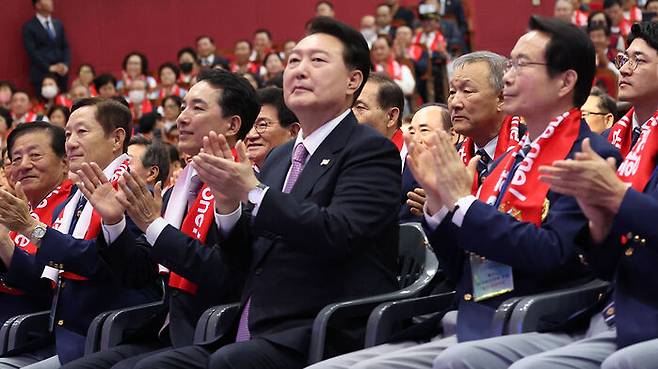 윤 대통령은 이날 서울 잠실 올림픽공원 올림픽홀에서 열린 '재향군인회 창설 제71주년 기념식 및 전국 읍·면·동회장 총력안보 결의대회'에 참석해 "자유민주주의의 보루로서 역할과 소명을 다하고, 국민의 안보의식 강화와 총력 안보태세 확립에 앞장서 달라"며 이같이 밝혔다고 대통령실이 전했습니다.