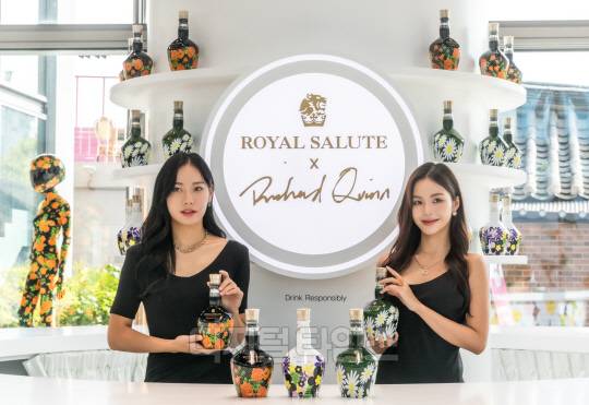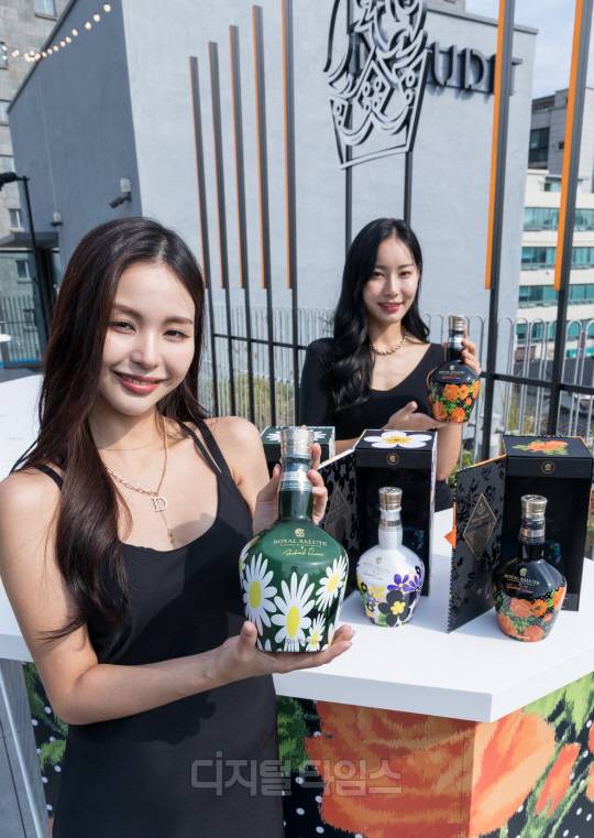 4일 서울 종로구 누디트 익선에서 모델들이 전세계 최초 공개되는 '로얄살루트 21년 리차드 퀸 에디션 2'를 선보이고 있다.