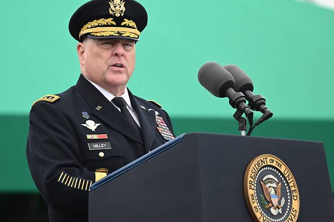 | ▲ 마크 밀리 전 합참의장이 지난 9월 29일 미국 버지니아주 메이어 기지에서 열린 합참의장 이취임식에서 연설하고 있다. |