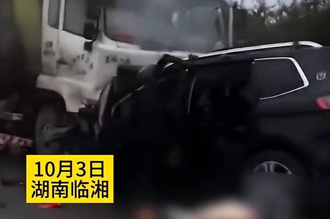 4일 텅쉰뉴스 등 중국 현지 매체는 3일 중국 남방도시인 후난성 웨양시의 현급 시인 린샹시(临湘市) 도로를 달리던 웨딩카 한 대가 옆 차선에서 달리던 대형 트럭과 충돌하면서 비극적인 사고를 당했다고 보도했다.