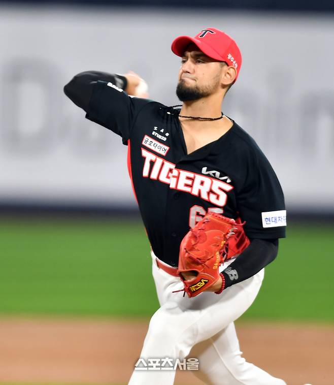 KIA 우완투수 산체스가 4일 수원KT위즈파크에서 열린 2023프로야구 KT위즈와 KIA타이거즈의 경기 더블헤더 2차전 선발역투하고 있다. 2023.10.04.