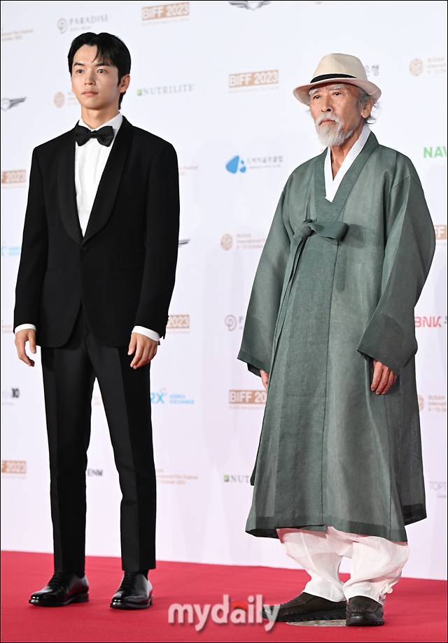 [마이데일리 = 부산 송일섭 기자] 배우 강승호와 우상전이 4일 오후 부산 해운대구 우동 영화의전당에서 진행된 '제28회 부산국제영화제(BIFF)' 개막식 레드카펫 포토월 행사에서 포토타임을 갖고 있다.