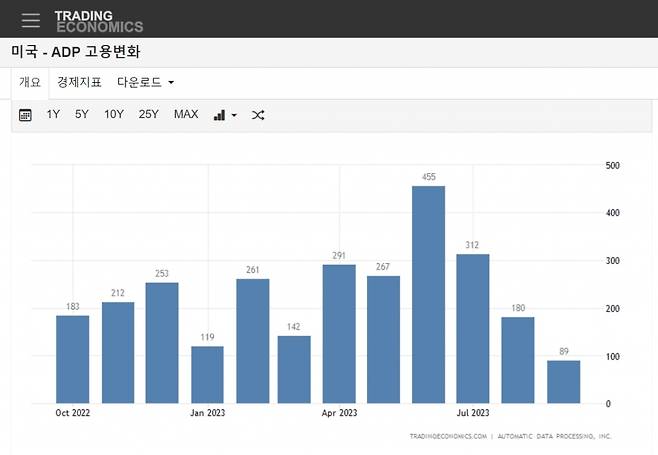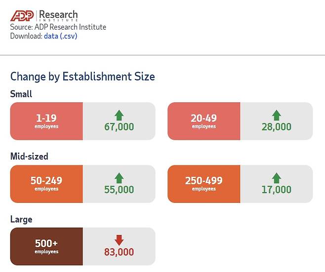 시장의 움직임은 전일과 마찬가지로 노동시장 데이터가 주도했다. 이날 미국 민간데이터업체인 ADP(Automatic Data Processing)는 지난달 비농업 민간고용 일자리가 8만 9000개 늘었다고 밝혔다. 전일 노동부는 8월 채용공고가 961만건으로 전망치 880만건을 크게 웃돌았다고 발표했는데 이와는 반대되는 집계다.