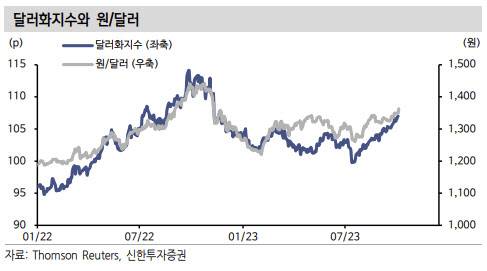 신한투자증권은 5일 원·달러 환율이 1360원을 웃돌며 연고점을 경신한 점을 짚었다.