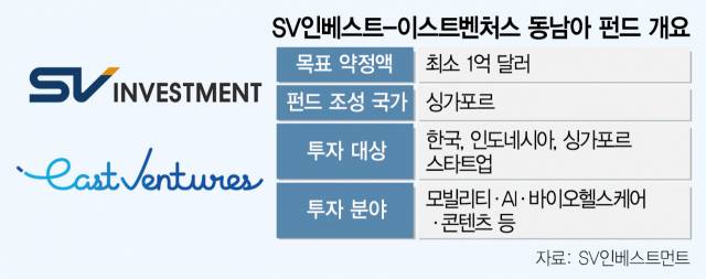 SV인베스트와 이스트벤처스는 주요 투자 분야로 △차세대 모빌리티 △인공지능(AI) △바이오·헬스케어 △콘텐츠를 선정했다. 한국과 동남아 스타트업 투자 비중은 5 대 5로 설정했으며 건당 300~500만 달러를 투자할 계획이다.