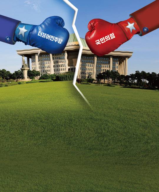 누구나 인정하겠지만, 한국 정치는 전형적인 승자독식 전쟁이다. 전형적이라 함은 한국의 승자독식 정도가 다른 나라들에 비해 훨씬 심하다는 뜻이다. 선거에서 이긴 진영의 승자독식 체제는 한국 특유의 연고 중심의 사적 네트워크와 결합하면서 전체 국민의 절반 이상을 진영 전쟁의 소용돌이로 끌고 들어간다. 한국 사회의 최대 문제는 바로 이런 '밥그릇 전쟁'으로 인한 '분열 디폴트'에 있는 것이지, 어떤 진영이 승리하느냐는 부차적 문제다. 어느 한 진영이 상대 진영을 완전히 압도해 버린다면 '분열의 사회적 비용'은 무시해도 좋을 수준이겠지만, 그게 불가능한 이상 어떤 정치와 개혁도 분열 비용을 넘어서지 못하는 비극이 발생하고 만다.진영 논리의 본산은 승자독식 전쟁의 최전선에 있는 정당이다. 거대 정당들은 서로 원수처럼 싸우지만 자신들의 기득권을 유지하기 위한 일에선 믿기지 않을 정도로 서로 협력을 잘한다. 이들은 정당의 힘을 키우기 위해 온 사회를 정치판으로 만든다. 한국에서 실제로는 중도의 비중이 꽤 높음에도 중도가 지속적인 정치세력이 되지 못하는 가장 큰 이유는 두 거대 정당 중 하나를 선택해야만 영향력·자리·계급을 보장받는다는 걸 반세기 넘게 보아온 집단적 학습효과 때문이다. 입으론 무슨 미사여구를 늘어놓건 거대 정당들이 암묵적으로 사회를 향해 던지는 메시지는 늘 단순 명료하다. "우리에게 줄 서지 않으면 국물도 없다!" 한국처럼 정치 과잉인 나라에서 그 메시지는 절대 어겨서는 안 될 철칙이 되고 만다.