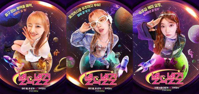 16일 첫 방송되는 U+모바일TV '우주 클래스 도약을 위한 별별 능력 업뎃기 별의별걸(이하 별의별걸)'은 5일 츄, 우기, 츠키의 3인 3색 개성과 우주급 무한 매력의 집약체인 캐릭터 포스터 3종을 전격 공개했다.