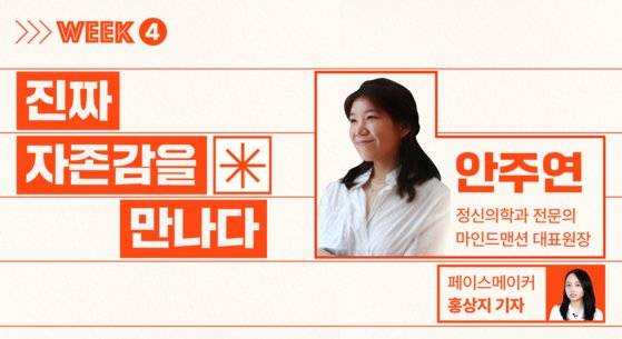 네 번째 주는 내 마음의 근간이자 주춧돌인 자존감을 탐구합니다. 정신의학과 전문의 안주연 마인드맨션 원장과의 라이브 세션이 공개될 예정입니다. 안주연 원장은 '내가 뭘 했다고 번아웃일까요'라는 책으로 전문적이면서도 따뜻한 지식을 전달해 왔는데요. 이번에는 자존감을 주제로 심리적인 조언을 전해 줄 예정입니다.