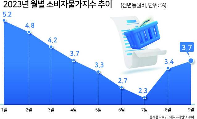 9월 소비자물가가 3.7%로 뛰어올라 5개월 만에 가장 높은 상승률을 보였다.