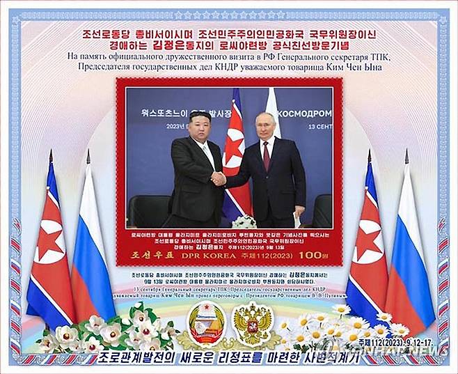북한, '김정은 러시아 방문' 기념우표 발행