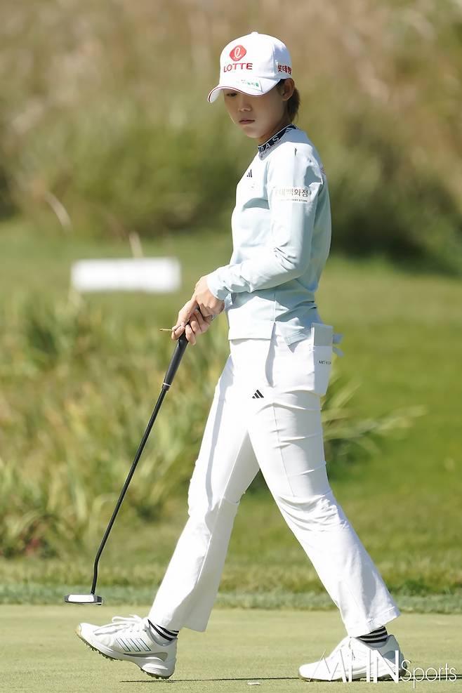 (MHN스포츠 여주, 박태성 기자) 5일 경기 여주에 위치한 블루헤런 골프클럽(파72ㅣ6,763야드)에서 '제23회 하이트진로 챔피언십'(총상금 12억 원, 우승상금 2억 1천 6백만 원) 1라운드가 열린가운데, 황유민이 2번홀 그린 퍼트 라인을 살피고 있다.