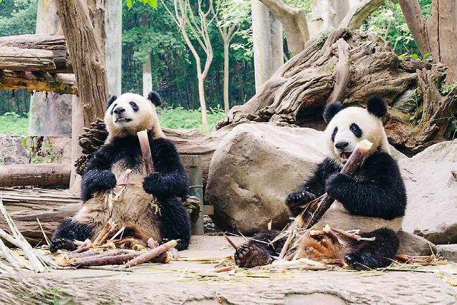 어쨌든 중국 쓰촨성에는 판다를 보호하고 번식을 연구하는 기지가 5곳이나 있다. 그중 청두에 자리한 '자이언트판다 연구기지'가 가장 규모가 크다. 이곳에 사는 자이언트판다의 개체 수는 약 200마리에 이른다. 중국에서는 판다가 동물 이상의 존중과 관심을 받는다. 코로나 이전을 기준으로 연간 900만명 이상의 관광객이 이곳을 방문했다고 한다.