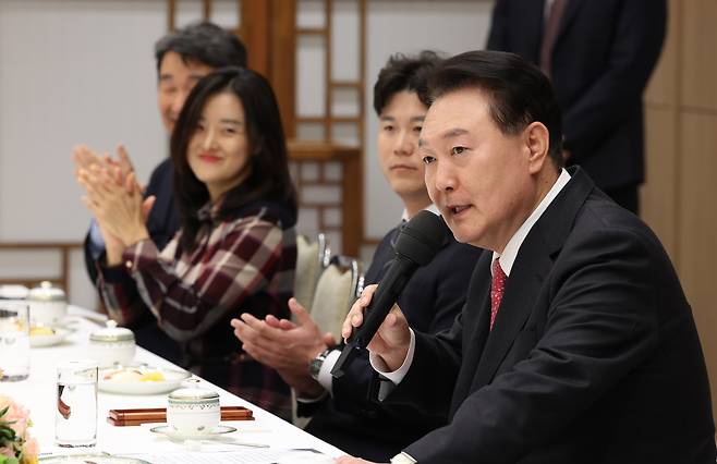 | ▲ 윤석열 대통령이 6일 서울 용산 대통령실 청사에서 열린 교권 보호 4법 계기 현장 교원과의 대화에서 격려의 발언을 하자 참석 교사들이 박수치고 있다. 2023.10.6 |