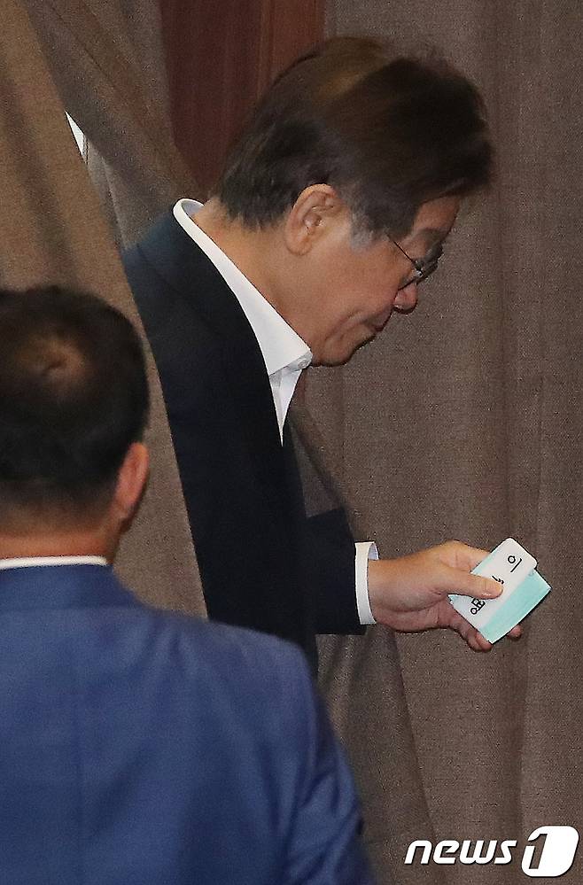 (서울=뉴스1) 임세영 기자 = 이재명 더불어민주당 대표가 6일 오후 서울 여의도 국회에서 열린 제410회 국회(정기회) 제9차 본회의에서 '해병대 채상병 사망사건 진상규명' 특검법의 패스트트랙(신속처리안건) 지정 동의안 투표를 하고 있다. 2023.10.6/뉴스1