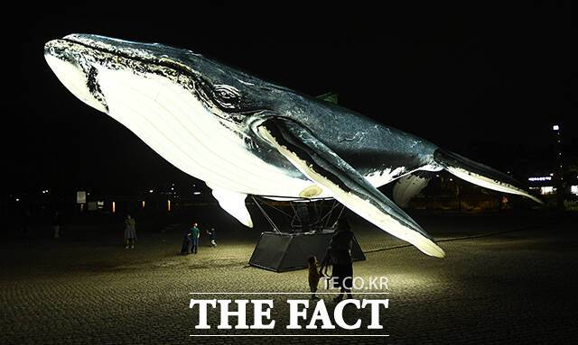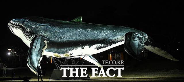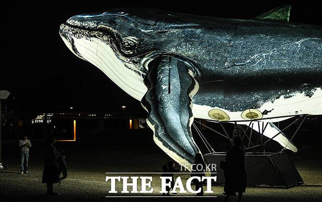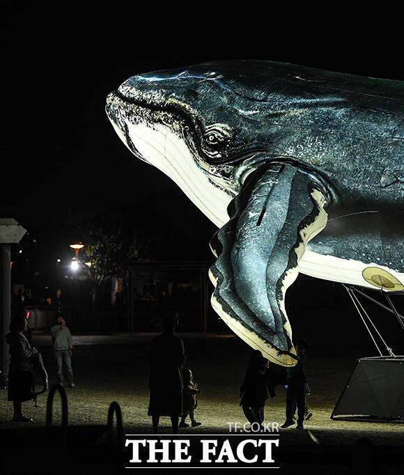[더팩트ㅣ세종=이동률 기자] '2023 세종축제'가 개막한 6일 오후 세종시 세종호수공원 일대에 대형고래 조형물이 설치돼 있다.