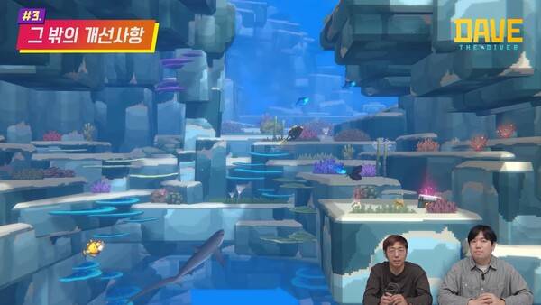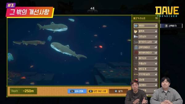 데이브 더 다이버 어종 중 악명 높은 어종으로 '환도 상어'가 있다. 과적단속반이라는 효과로 조금만 무거워서 느려지면 공격하는 특성을 지녔다. 황 디렉터는 해당 난도가 과하다고 판단했고 쾌적한 플레이 환경을 위해 환도 상어의 시야 거리, 추격 속도, 몸통 박치기 대미지를 소폭 하향하기로 결정했다.