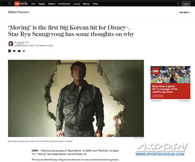 CNN은 지난 5일(현지시각)'디즈니+의 첫 한국 히트작 "무빙', 류승룡에 들은 그 이유'라는 제목의 기사에서 K히어로물 '무빙'을 집중 조명했다.