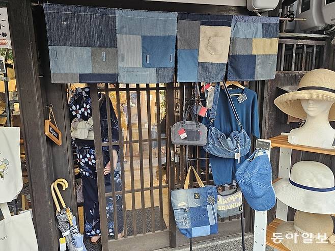 방직공장이 있었기 때문인인지 쿠라시키에는 푸른색 질긴 면직물인 ‘데님(denim)으로 만든 패션 소품을 파는 가게들이 몰려 있다. ’청바지 골목‘ ’데님 천국‘으로 불리는 골목이다. 일본의 상점에서는 ‘영업중’임을 표시하는 노렌을 문 앞에 걸어놓는 데, 이 곳에는 데님 소재의 푸른색 천으로 만든 노렌을 걸어놓은 곳이 많았다.