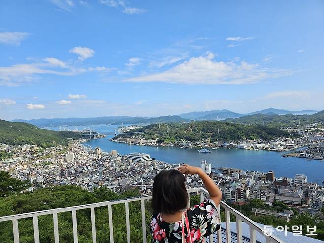 세토내해 섬과 바다를 잇는 자전거도로인 ‘시마나미카이도’를 한눈에 볼 수 있는 센코지산 전망대.