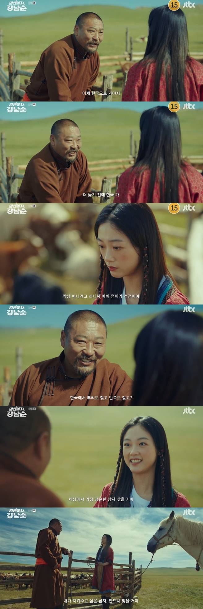 친아빠 강봉고(이승준 분)는 몽골에서 5살 강남순(이유미)를 잃어버렸다. "아빠"를 찾으며 울던 강남순을 한 몽골 부부가 발견했지만, 아이가 무슨 말을 하는지 알지 못했다. 이들은 남순에게 연민을 느껴 자식으로 여기며 키웠다.