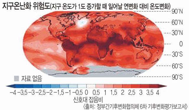 전례 없는 기후 시기가 빠르면 기후변화 영향이 빨리 나타나게 되므로 ‘지구온난화 위험도’가 크게 된다. 유엔 기후변화에 관한 정부 간 협의체(IPCC)가 2021년 발간한 6차 기후평가보고서에 따르면 우리나라는 전례 없는 기후가 비교적 빨리 나타나 지구온난화 위험도가 큰 지역이다.