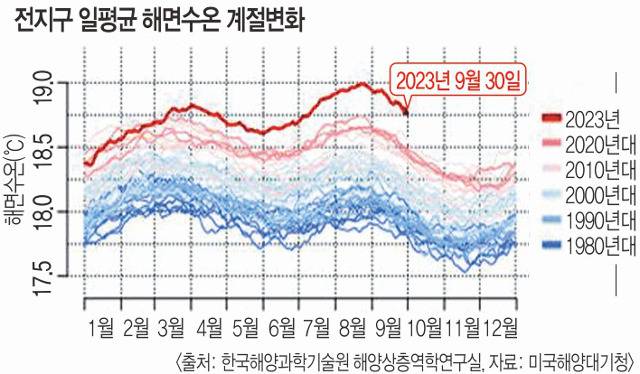 미국 항공우주국은 올해 여름이 관측이 시작된 1880년 이후로 가장 더웠다고 밝혔다. 필자가 속한 연구진에서 조사한 바에 따르면 올해 바다는 대기보다 4개월 이른 3월 중순부터 관측 역사상 최고 수온을 기록한 이후 현재까지 매월 최고 수온 기록을 갈아치우고 있어 올해 여름뿐만 아니라 올해 연평균 수온이 관측 역사 이래로 가장 높을 것으로 보인다.