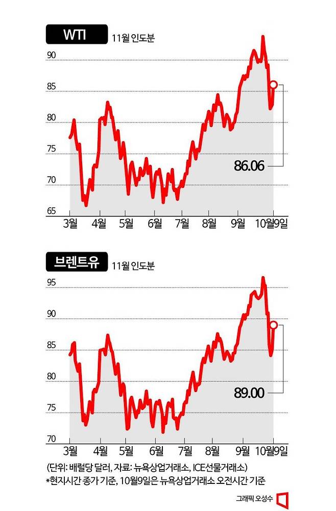 9일(현지시간) 뉴욕상품거래소에서 서부텍사스산원유(WTI) 선물 가격은 전장 대비 4.3%(3.59달러) 오른 배럴당 86.38달러에 마감했다. 이는 지난 4월 이후 가장 큰 상승률로, 종가 기준 지난 3일 이후 최고치다. 같은 날 런던 ICE 선물거래소의 브렌트유 선물 가격은 88.15달러를 4.2%(3.57달러) 상승했다. 국제 전문가들은 이스라엘과 팔레스타인 양국이 원유 생산지가 아닌 점을 고려하면 시장에 미치는 영향은 제한적일 것으로 전망했지만, 중동 인접국으로의 확전 가능성에 유가가 상승하고 있다고 봤다.