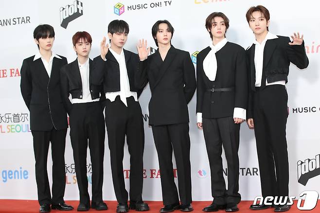 (인천=뉴스1) 권현진 기자 = 보이넥스트도어가 10일 오후 인천 남동구 소래로 인천남동체육관에서 열린 '2023 더팩트 뮤직 어워즈'(2023 TMA) 레드카펫 행사에 참석해 포즈를 취하고 있다. 2023.10.10/뉴스1