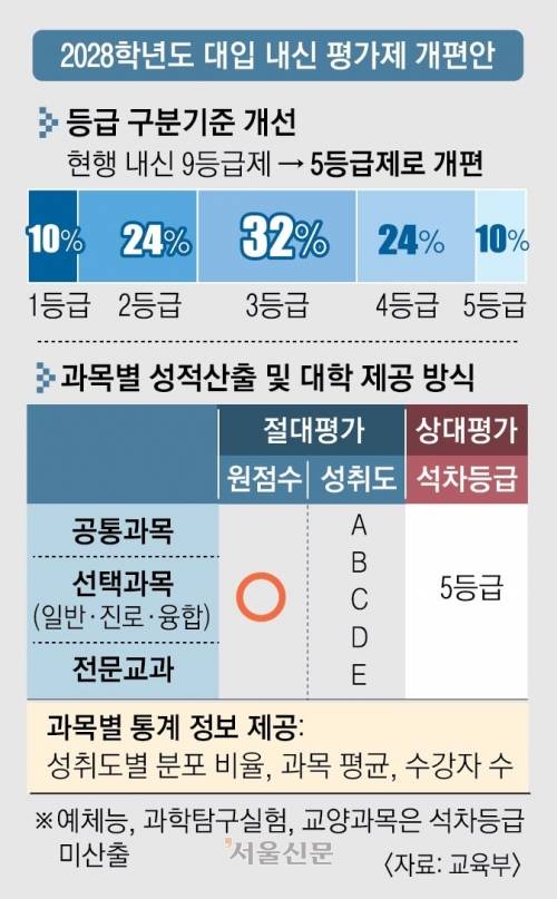 2025년 고교내신 전 학년 5등급 상대평가… 1등급 4%→10% 확대 [대입제도 개편]