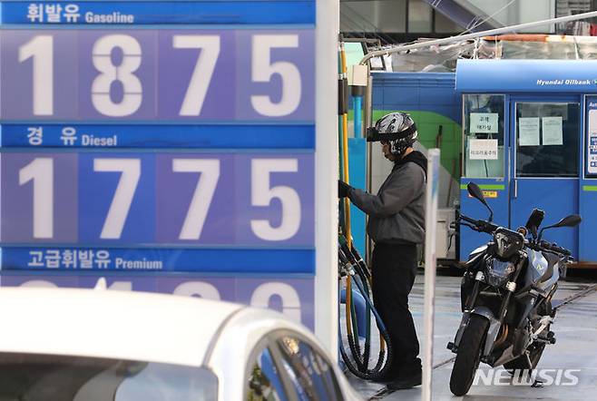 [서울=뉴시스] 권창회 기자 = 이스라엘·하마스 무력 충돌 사태로 국제 유가가 출렁이자 서민들의 기름값 걱정도 깊어지고 있다. 10일 한국석유공사 오피넷에 따르면 10월 첫째 주 휘발유 판매가격은 전주 대비 6.3원 상승한 ℓ(리터)당 1796원으로, 13주 연속 상승세를 보이고 있다. 11일 오전 서울 시내 주유소에 유가 정보가 표시되어 있다. 2023.10.11. kch0523@newsis.com