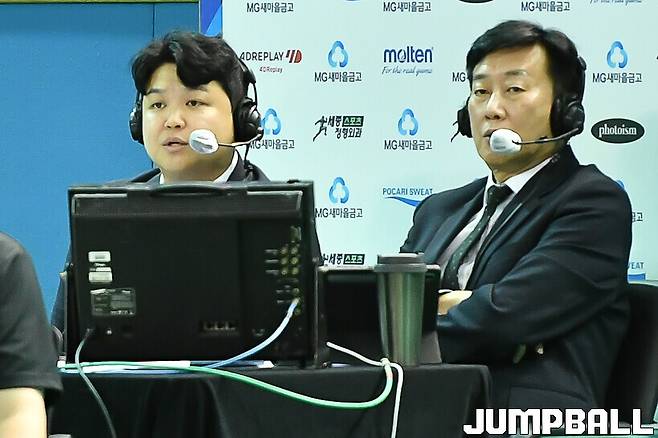 KBS 김현태 아나운서의 아들 SPOV 김영찬 캐스터가 아버지의 뒤를 따라 농구 중계를 맡고 있다.