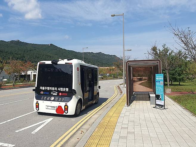 롯데정보통신은 12일 자율주행 자동차 시범운행지구로 지정된 충남 홍성 내포 신도시에서 자율주행 셔틀을 운행한다고 밝혔다. 충남도민들을 대상으로 향후 11월 말까지 진행될 예정이다.