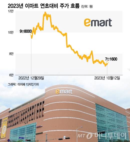 12일 코스피 시장에서 이마트는 전일대비 1500원(2.14%) 오른 7만1600원에 마감했다. 올 들어 26.9% 내린 주가다. 지난 4일에는 장중 6만8500원을 기록하기도 했다.