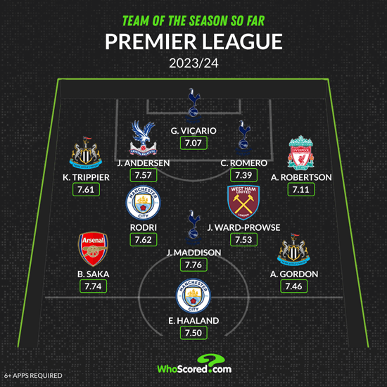 손흥민이 2023/24시즌 잉글리시 프리미어리그에서 6골로 득점 2위에 올랐지만 유럽통계매체가 선정한 이번시즌 지금까지의 프리미어리그 베스트11에서 그의 이름은 찾아볼 수 없다.