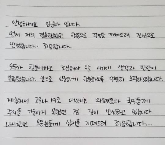 당시 약 2분 만에 라이브 방송은 끝났지만, 논란은 계속 커졌고 결국 이효리와 윤아는 "아직 조심해야 하는 시국에 맞지 않은 행동을 한 점 깊이 반성합니다"라고 공식 사과했다.