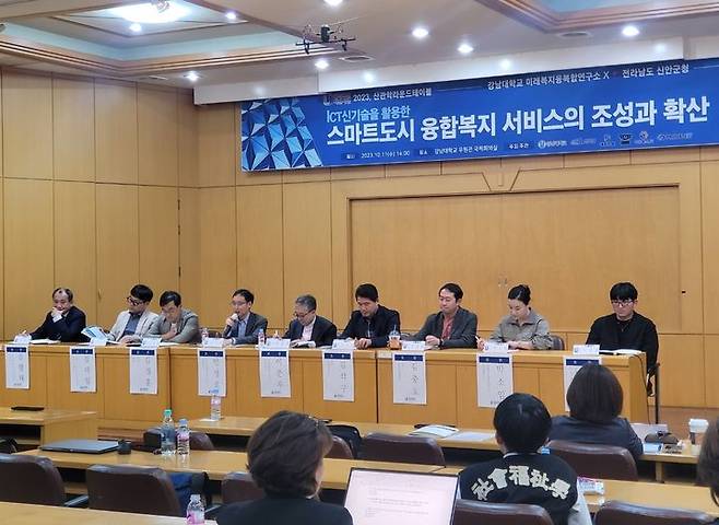 이날 산관학라운드테이블에서는 ‘정보통신기술(ICT) 신기술을 활용한 스마트도시의 융합복지 서비스 조성과 확산’이라는 주제를 고희애 교수의 사회로 주제발표와 패널토의로 진행됐다.