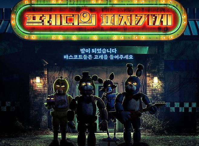 '프레디의 피자가게'는 80년대에 아이들이 실종되고 폐업한지 오래된 '프레디의 피자가게'에서 야간 경비를 서게 된 '마이크'가 피자가게 마스코트들의 기괴한 실체를 목격하게 되면서 벌어지는 서바이벌 호러테이닝 무비로, 오는 11월 15일 국내 개봉 예정이다.