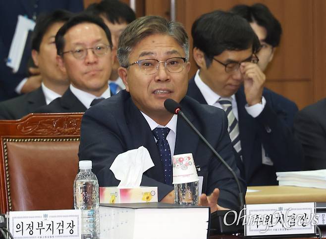 | ▲ 신봉수 수원지검장이 17일 오전 서울 서초구 서울고등검찰청에서 열린 법제사법위원회의 서울고등검찰청, 서울중앙지검, 수원지검 등에 대한 국정감사에 출석해 의원들의 질의에 답변하고 있다. |