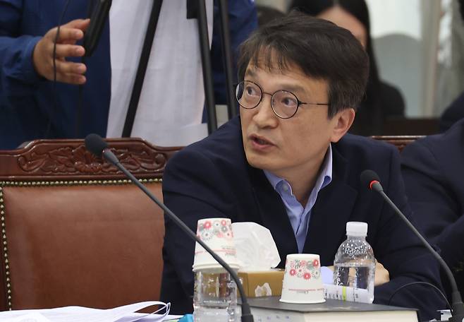 | ▲ 김의겸 더불어민주당 의원(비례대표)이 17일 오전 서울 서초구 서울고등검찰청에서 열린 법제사법위원회의 서울고등검찰청, 서울중앙지검, 수원지검 등에 대한 국정감사에서 쌍방울 그룹 대북송금 사건과 관련해 이재명 대표 수사를 맡은 이정섭 수원지검 2차장검사의 위장 전입과 김영란법 위반 의혹 등을 제기하며 이 차장검사의 국정감사장 출석을 요구하고 있다. |