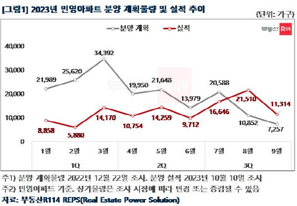 1~3분기 분양 실적과 합치면 2023년 총 공급량은 20만 가구를 밑도는 수준에 그칠 것으로 예측된다.