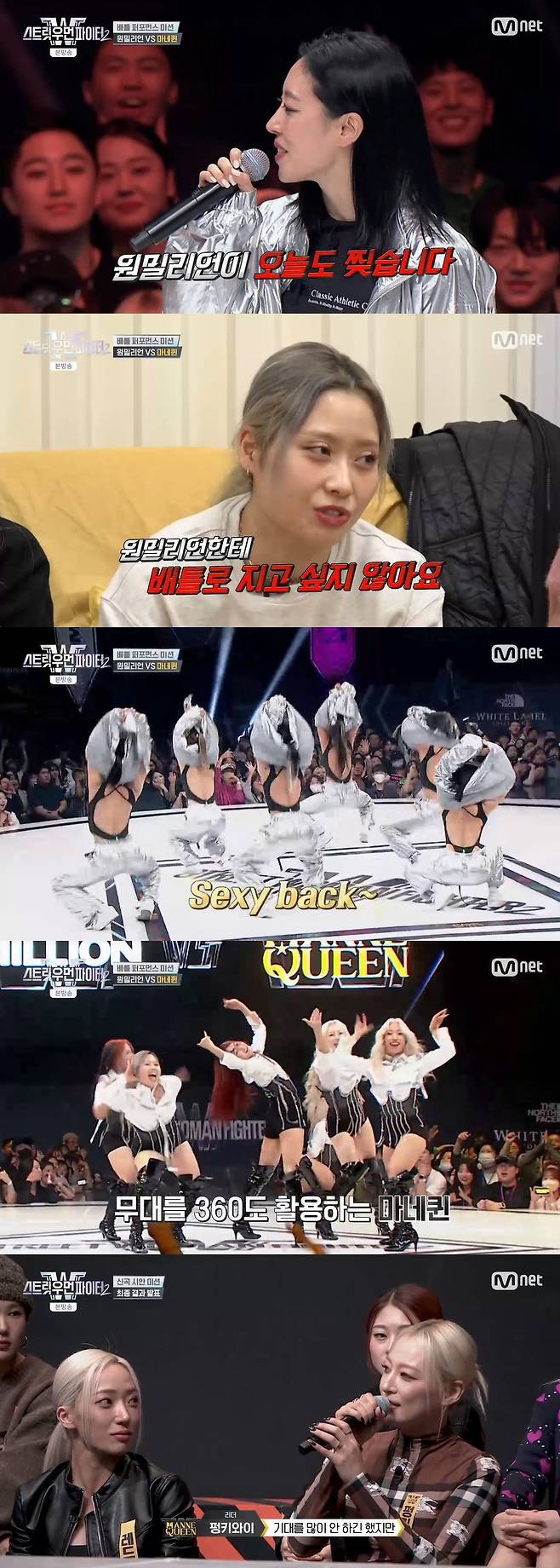 연이은 미션 우승으로 자신감이 더해진 원밀리언은 중간 점검에서 탈락 예상 크루로 올랐다. 왁씨는 "원밀리언에 배틀로 지고 싶진 않다. 마네퀸의 명예를 걸고 배틀로 이겨보자"고 밝혔다.
