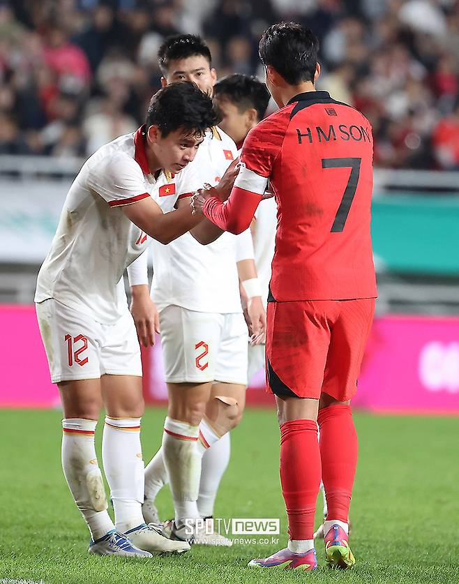 베트남 선수들은 대패했지만, 손흥민을 향한 존경심을 보여줬다.