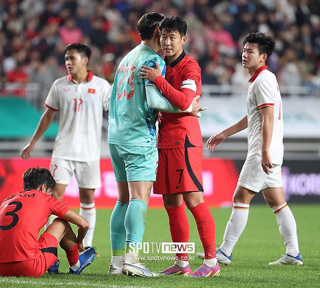 손흥민도 베트남 선수들과 일일이 눈맞춤을 하고 인사를 하며 매너 있는 모습을 보였다.